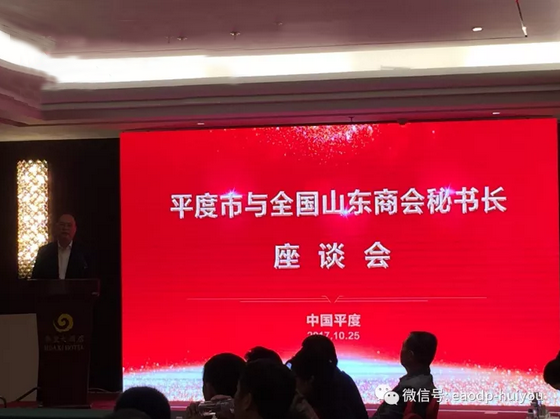 【据讯】10月24日至10月27日,山东省企业集团海外发展促进会应邀参加第二届全国山东商会秘书长联席会,并接受平度市政府所授“平度市驻山东省企业集团海外发展促进会(济南)联络处”牌匾。山东省企业集团海外发展促进会驻...